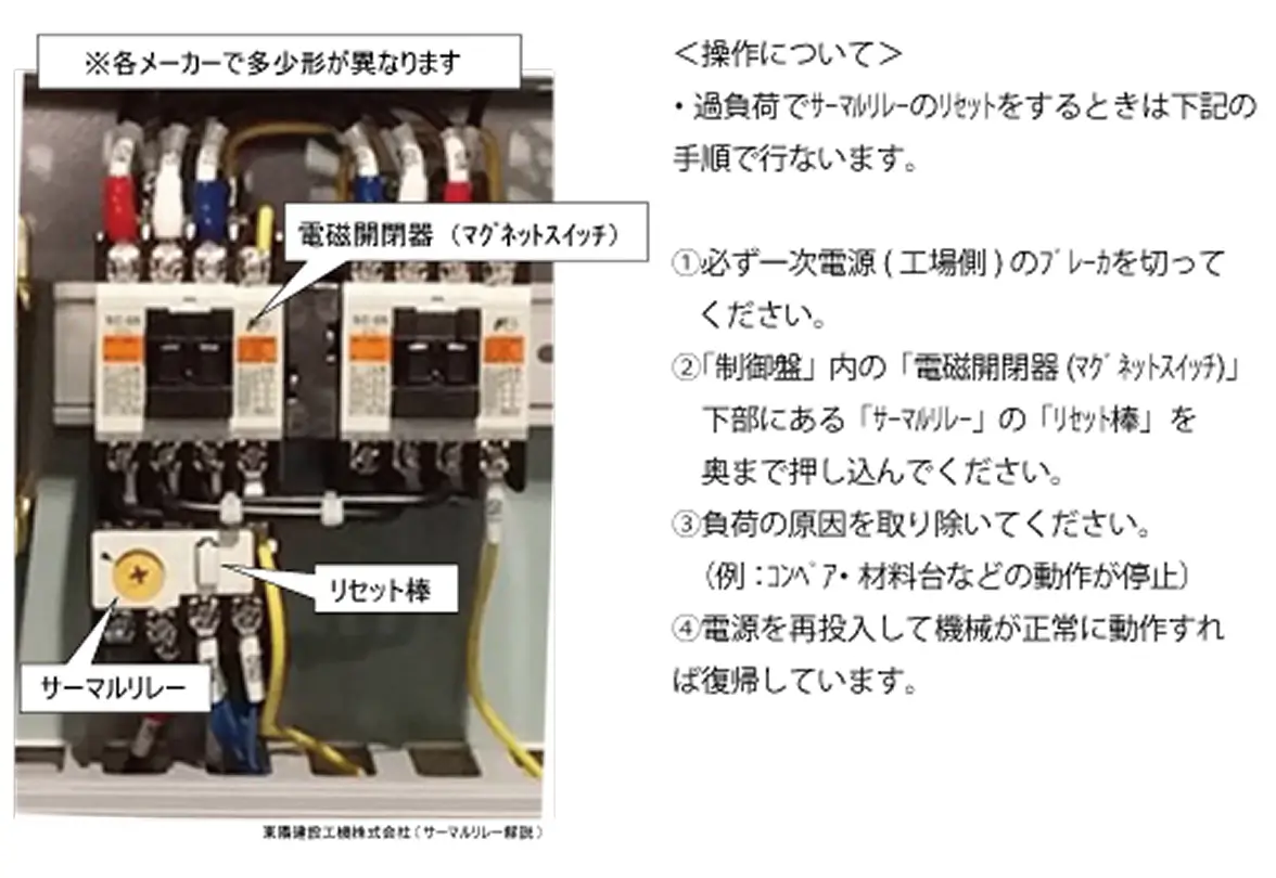 当社の機種の中には、制御マグネットスイッチの中に逆相防止器を使用しています。