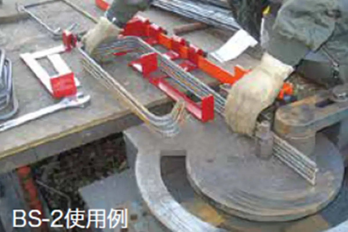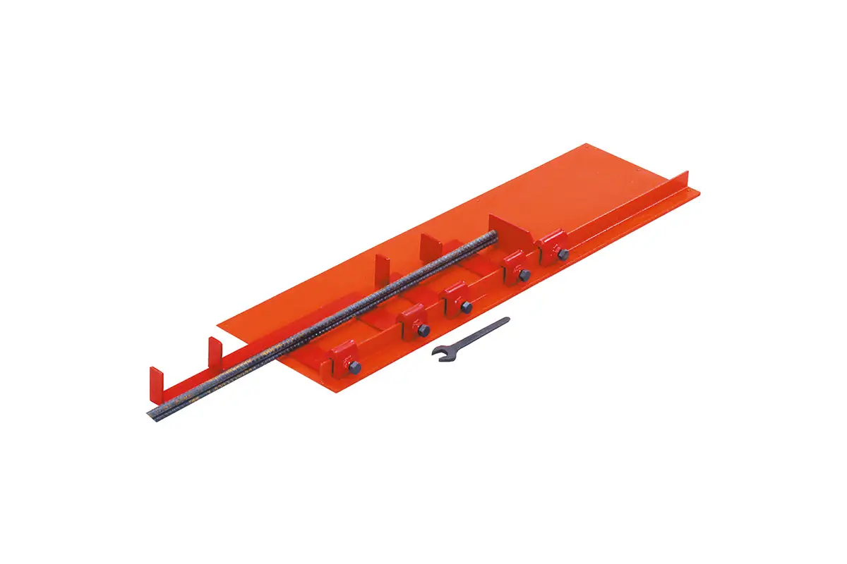 ・鉄筋作業台にワンタッチでセットできる曲げ用つきあて。 ・フープ・スターラップ・幅止め・小さな加工等には、特に威力を発揮します。 ・スライド式のためmm単位まで自由自在に固定でき、レンチ1本で操作できます。 ・当具1を固定ボルトで締めつけるため、加工製品が一定です。 ・曲機天板上でもつきあて可能。