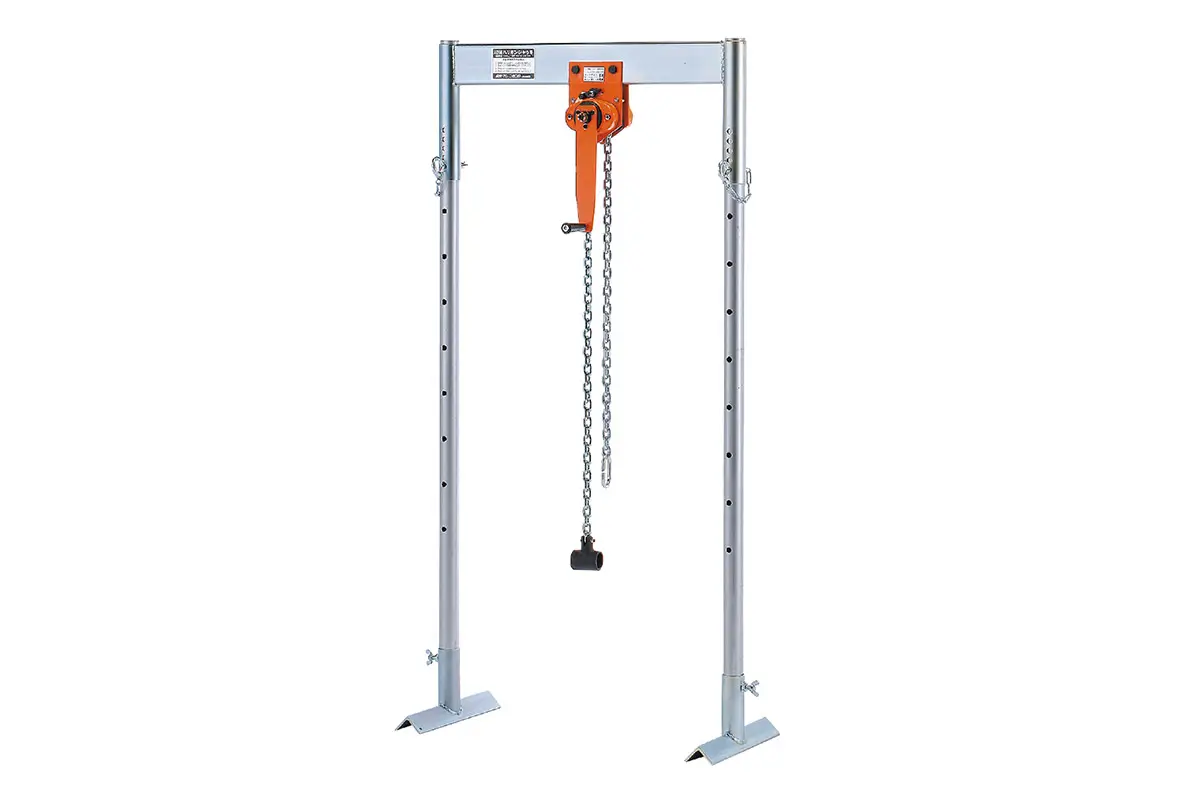 ・レバーブロック使用でチェーンがフリーに位置決めが簡単です。 ・楽な姿勢で確実な配筋と結束。 ・組立・解体・高さ・段差の調整がワンタッチ。 ・現場合わせ架台作りが不要。 ・さらに軽量になり持ち運び便利になりました。 ・上筋・下筋を任意の位置へ預けるのに最適。 ・随所にメッキ処理、防錆にすぐれています。 ・吊上1t用は一回り頑丈な部材を使用。