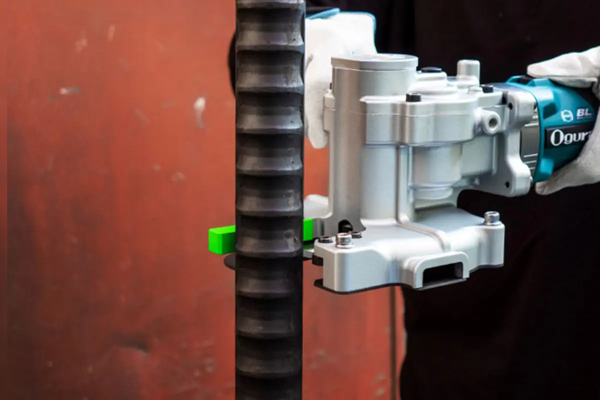 ・D41高強度鉄筋 (SD390 / SD490) 対応チップソーカッター。 ・100mm間隔で配筋した鉄筋の切断が可能。 ・オリジナルチップソー に強固な変則トリプルピン方式を採用。 ・フランジを無くしたシンプル設計ながら、安定した切断性能と確実な装着性 (誤装着防止機能付き) を実現。 ・最適給電システム+大型コントローラによる発熱保護により、停止するまでの連続作業可能時間が大幅UP。 ・コードレスタイプなのにAC100V機超えのハイパワー化を実現した40V maxモーター搭載。 ・1バッテリ(4.0Ah)あたりのD41高強度鉄筋(SD490)切断回数30回超えを実現。 ・大容量4.0Ahバッテリ(BL4040)を2個標準付属。 ・あらゆる操作状況に対応した、上・左・右の三方向へのハンドル取り付けが可能。