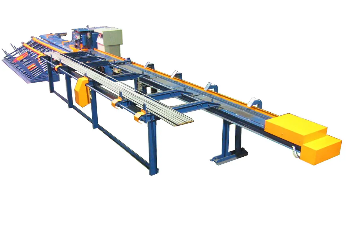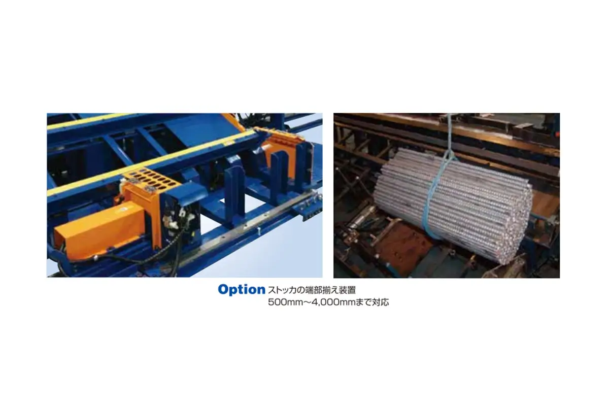 ・短尺切断の効率化に最適。 ・鉄筋を後ろから押し込みながら切断。 ・特殊ベルトを使用しており、材料搬送時の騒音が軽減。 ・切断機はMC-51W搭載。 ・切断の長さは、1mm単位で設定可能。 ・データ入力はタッチパネルで簡単に寸法設定。 ・2種類の取合せ切断が可能(ご要望に応じて4種類も可能)。 ・切断刃幅は190mm(D10を16本同時切断可能)。 ・残材自動排出機構により効率良く安全に切断可能。 ・メッシュ加工時の端部補強筋に使用する50mm~の短尺切断が可能。 ・コンベアの長さは、4m×7m。 ・オプション:QRデータ読み込み。 ・ TAS-Ⅱを付加すれば材料供給作業も効率UP。 ・TLINKSモデル(IoT機器搭載)。